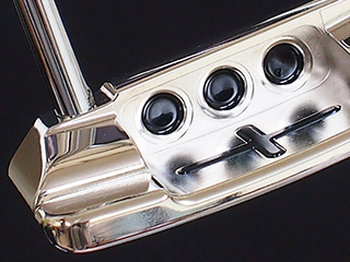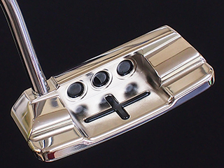 彫刻の原稿を頂きフェース面トゥ側にオリジナル彫刻を・・・・・・お気に入りのイラストをパターヘッドに入れることで、何だか気分も向上しゴルフプレイも調子が出てくるそんな相乗効果もありますね!鮮明な原稿があればお気に入りのマークを彫刻出来ます。細かなイラストやマークとなると彫刻での表現が出来ない場合もあり、内容の変更をお願いする場合もございます。ソールのプレートはハイパーブラックメッキ、そしてヘッドにはプラチナシャインメッキ仕上げ。カラーリングはブラックとゴールドでペイントしています。