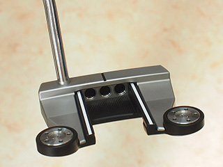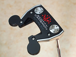 アルミプレート部分の一部をカット!!  A・SCOTT選手使用のプロトタイプパターと同じ様にカスタマイズ・・・・・ヘッド後方にあるアルミプレートを一部カットしTf-9仕上げで再加工(ブラック)化しています。少しの加工を加える事でパターのイメージが変わり次回のラウンドが楽しくなりますね。