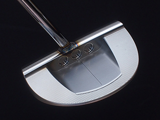 センターシャフトカスタムを施したNP2+ / スクエアバック2 / GOLOメッキ加工前の状態まで仕上げていますのでブラック仕上げなど好みのフィニッシュを選択して頂けます。例えば仕上げは施さず溶接痕を残したまま仕上げるというのもありですね。焼けが残っていることでマニアック感がより強調されたカスタムパターになります。実践で使用感を試してからロフトやライ角のスペック調整を行ってからメッキ仕上げするというのもありかと思います。こちらのセンターカスタムにはフェース面トゥ側にピースマークのスタンプを彫刻しています。