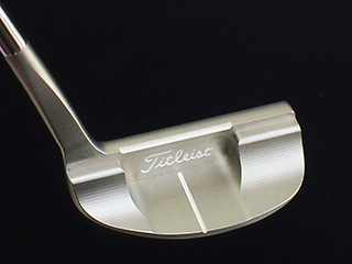サイトラインあるのと無いのとでは大違い!全く必要としない方やセットアップ時のアライメント作業にラインを基準にセットアップする方、個々にパッティングスタイルは違いますね。Gさんはトップラインとフランジ部にサイトラインを加工・・・・フランジ部分のラインを2本通常より太いラインを追加しペイントレスに、メッキ仕上げはツアークロムサテンメッキ、刻印カラーは既存サイトラインとトップブレードに追加ラインのみをブルー、その他はペイントレスで仕上げています。
