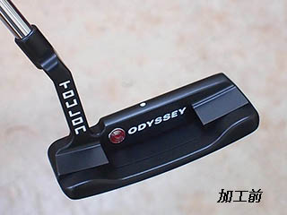 フランジ部分にサイトライン追加・・・・・このモデルにはトップブレードにサイトドットが入っているだけでサイトライン追加のご依頼です。ラインやドットはセットアップ時に重宝する目印ですね。全く目印が必要ないと言われる方もいらっしゃいますが、このサイトラインの工ご依頼は意外と多い加工の一つです。やはりセットアップ時にはしっかりしたラインが入っているとスムーズにアドレスが出来自然とスコアにも結び付くのではないでしょうか。