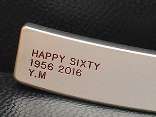 お父さまの還暦お祝いに・・・・レストアを行い新品同様に仕上げたカリフォルニアモントレーに、還暦お祝いスタンプをフェース面に。ゴルフ好きなお父さまでしたら喜ばれることだと思います。誕生日や結婚のお祝い記念日の贈り物等もご相談下さい。