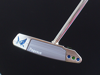 ベントシャフトのスクエアバックをセンターシャフトに加工・・・・非常に人気のカスタマイズでファストバックやFUTURAシリーズでの注文も多くある加工の一つです。シャフト延長線上でのヒット感覚が人気の要因だと思います。こちらのパターはその他2個キャラクタースタンプを装備!ソールにホヌ、更にフェース面にはペガサスを彫刻しクリアブルークリアグリーン ホワイト イエローのカラーリングに。そしてフランジ部分のサイトライン2本追加!こちらは既存ラインの両サイドに少し細めのラインを入れています。今回ご注文時はご来店いただきご要望をしっかりとお聞きできましたのでイメージ通りのパターが出来上がったかと思います。