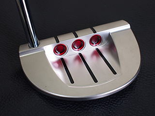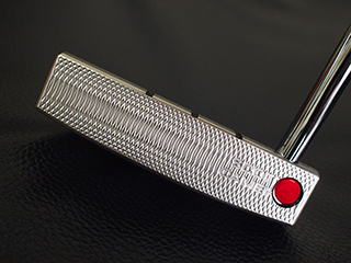 GOLO5ブラックミストを剥離プラチナムメッキを施しトップブレード部にサイトライン3本追加。フランジ部分にも2本追加しています。バックフェース3ドットのクリアレッド 外側のシルバーリングまでペイントし少し大きめなドットになっています。フェース面にドット彫刻を SCOTTY CAMERON刻印はカラーレスにする事でGOLOのイメージが全然変わりますね!