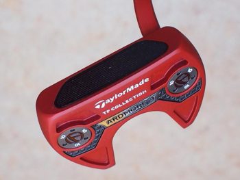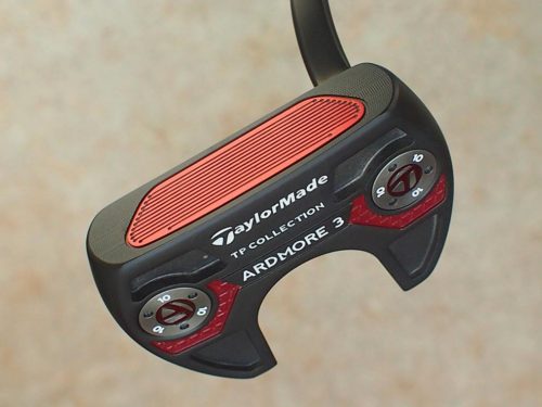 アードモア3をタイガー仕様に!市販品のヘッドカラーレッドをブラックカラーに加工しインサートをブラックを⇒レッドインサートに加工 その他の刻印はホワイト&レッドでカラーリングし仕上げています。グリーン上で目立ち度No1ですね!