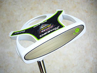 ホワイト仕上+ステンレスインサートカスタムです。ホワイト仕上にライムグリーンのペイントは良く合いますね!ステンレスインサートはミディアムミルド施し トゥ側にクローバーを彫刻。インサート交換でヘッド重量アップが出来理想のバランスで仕上がっています。