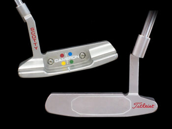 通常サイズのクランクネックをロングネックにカスタム・・・・・・レストア研磨を行いフェース面にノンミルド加工を施しタングステンをインサートしています。仕上げにはカーボンブラック+仕上げで刻印カラーはホワイトをペイントしスペシャルな1本に仕上がっています。ノンミルドとなっていますが極うっすらと非常に細かな機械加工の痕が付いています。ロングネックに加工したことで殆どフェースバランスにも仕上がっている今回のスタジオスタイル!オプション満載のカスタムです。