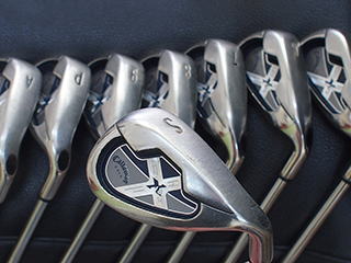 ヘッド全体に使用キズが多くあるヘッドです。ただ素材がステンレスなので致命的な凹みは無く綺麗に仕上げる事が出来ています。これが軟鉄素材だと結構凹みが大きく研磨しきれず残る場合があります・・・研磨しきれず残る場合)の意味ですが、ヘッド形状を保ちながらの研磨です。画像Callawey X-18レストアは、鏡面仕上げ+フェース面ブラスト加工で仕上げています。新しいアイアンを購入したかの仕上がりだと思います。
