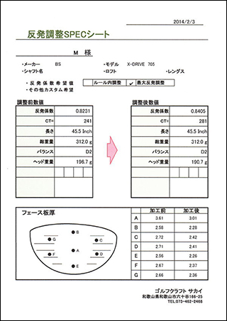 ホーム ブログ 高反発加工 2014.02.03 高反発加工 #高反発 M 様 BS X-DRIVE705 最大反発調整のご依頼です。加工前の反発係数が 0.8231 加工後が 0.8405 ⇒ 調整後0.017アップです。最大反発調整希望の場合はヘッドスピードの申告をお願いしています。勿論COR:0.830ルール内での加工も可能です。反発調整はルール内調整 最大反発調整をご指定頂けます。 Tweet シェア ブログ一覧に戻る