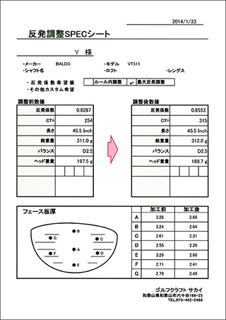 ホーム ブログ 高反発加工 2014.01.23 高反発加工 #高反発 Y 様 BALDO VT-511 レフト 最大反発調整のご依頼です。加工前の反発係数が 0.8287 加工後が 0.8553 ⇒ 調整後0.026アップです。反発係数これだけアップすると実感頂けると思います!2打目のクラブ選択・・・・戸惑う事になるでしょう(笑) Tweet シェア ブログ一覧に戻る