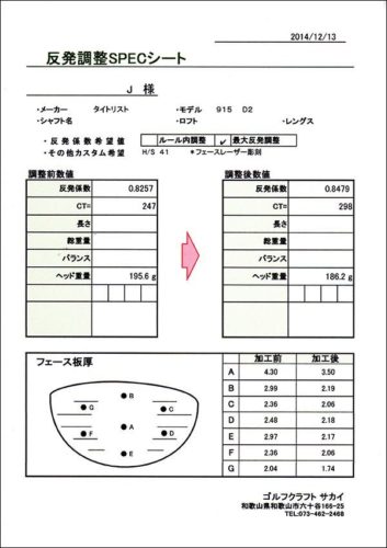 ホーム ブログ 高反発加工 2013.08.01 高反発加工 #高反発 A 様 高反発加工!!! 910 D3 今回のご依頼も最大反発を希望・・・・加工前の反発係数が 0.8235 加工後が 0.8471 ⇒ 調整後0.023アップです。これだけ係数がアップすれば飛距離アップは十分体感頂ける事間違いなしです。毎日暑い日が続きますがこのクラブでガンガン飛ばしてください! Tweet シェア ブログ一覧に戻る