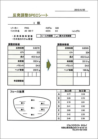 ホーム ブログ 高反発加工 2013.05.01 高反発加工 #高反発 I 様 高反発加工PING G-20 発係数0.8279~0.8505に・・・ 調整後のCORは0.0226アップ=飛距にすると約22ヤードアップが見込めます。これからシーズンに向けてガンガン飛ばしてください。 Tweet シェア ブログ一覧に戻る
