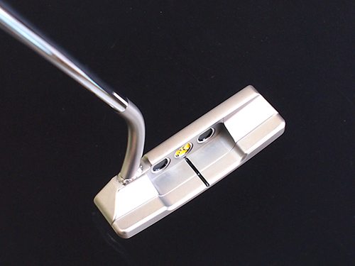 スコッティキャメロンのニューポート2スワンネックカスタム!(レストア品)状態の良いパターをレストアしカスタマイズを施したパターです。既存のクランクネックを切断し曲げ込みを行ったネック(スワンネック)を溶接し仕上げたパターになります。このパターのトゥハング角ですがフェースバランスではなく水平より少しトゥが下がる仕様、そしてフルシャフトオフセットになっています。ストローク中のフェース開閉が小さい方にお勧め致します。刻印カラーはブラック・イエローでカラーリングを行い、バックフェースにあるスリードット●●●の真ん中にXの文字を溶接で描きイエローでカラーリングしています。 このパターはHEAVIER Balance仕様にもカスタマイズ!バランスはD6に設定されたストロークの安定感もアップさせています。