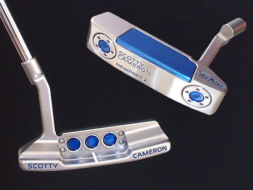 スコッティキャメロンのNewport2ハイパーメッキインサート!フェースインサート部分に特殊なハイパーメッキをセレクトしてみました。ビーズショット仕上げのシルバー色にブルーのインサート さらにブルーのカスタムショップグリップを装着し、ブルーを基調に品よく仕上がっています。さらにヘッド重量をアップさせるカスタム(HEAVIER Balance) ヘビーバランス仕様にウエイト調整を行いストロークの安定感をアップさせています。