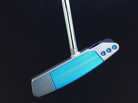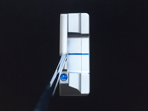 シャフト延長線上でボールをヒットできオフセットモデルとはちがう操作性の良さを体感出来るパターにカスタムしています。トップブレード後方にセットアップ時に役立つアライメントドットも装備したモデル!ツアープロの中にはセンターシャフトを好んで使う人が多くいるのも事実です。プロが好んで使うのは理由があります。一般的には難しいパターというイメージがある方もいるかも知れませんが実際使ってみると構えやすい、打ちやすいと感じる方が多くいらっしゃいます。パッティングを直感的に打つ方や感覚を重視し打つ方、そしてストロークを直線的なイメージで打っていく人には相性が良いパターです。センターシャフトパターまだ使用した事のない方や買い替えをお考えの方是非この機会にご購入を。アルミには、ハイパーメッキを施したプレートになります。