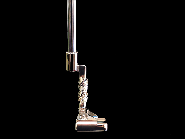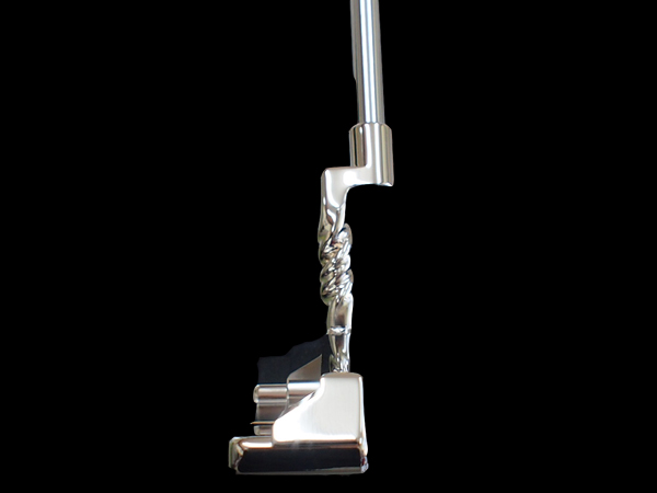 まさに芸術的な1本グリーン上では注目のパター間違いないでしょう。ツイストネックパターには2種類のネックパターンがあります。曲げ込みを行ったネックを溶接で取付けるタイプと溶接痕のないタイプがあり、こちらはロフト・ライその他の調整を行いネックを溶接で取り付けているタイプです。非常にカスタム感のある仕上げになっています。ウエイトが20Gを装着していますので、少しヘビーバランスになっています。