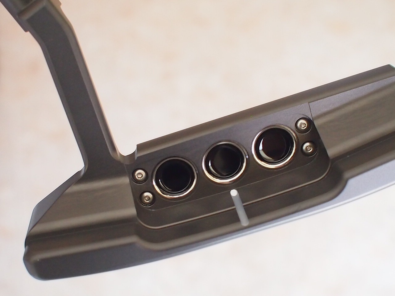 ぜひ手に取りご覧下さい。もう一つの特徴は通常ヘッドをブラック化するとスリードット●●●の外側のリング状の部分までブラックになってしまいますが、カーボンブラックはドット周りのシルバーリングは残され純正仕上と同じ仕様になっています。全てに拘りぬいた1本です。メッキ仕上:カーボンブラック ペイント:ブラック