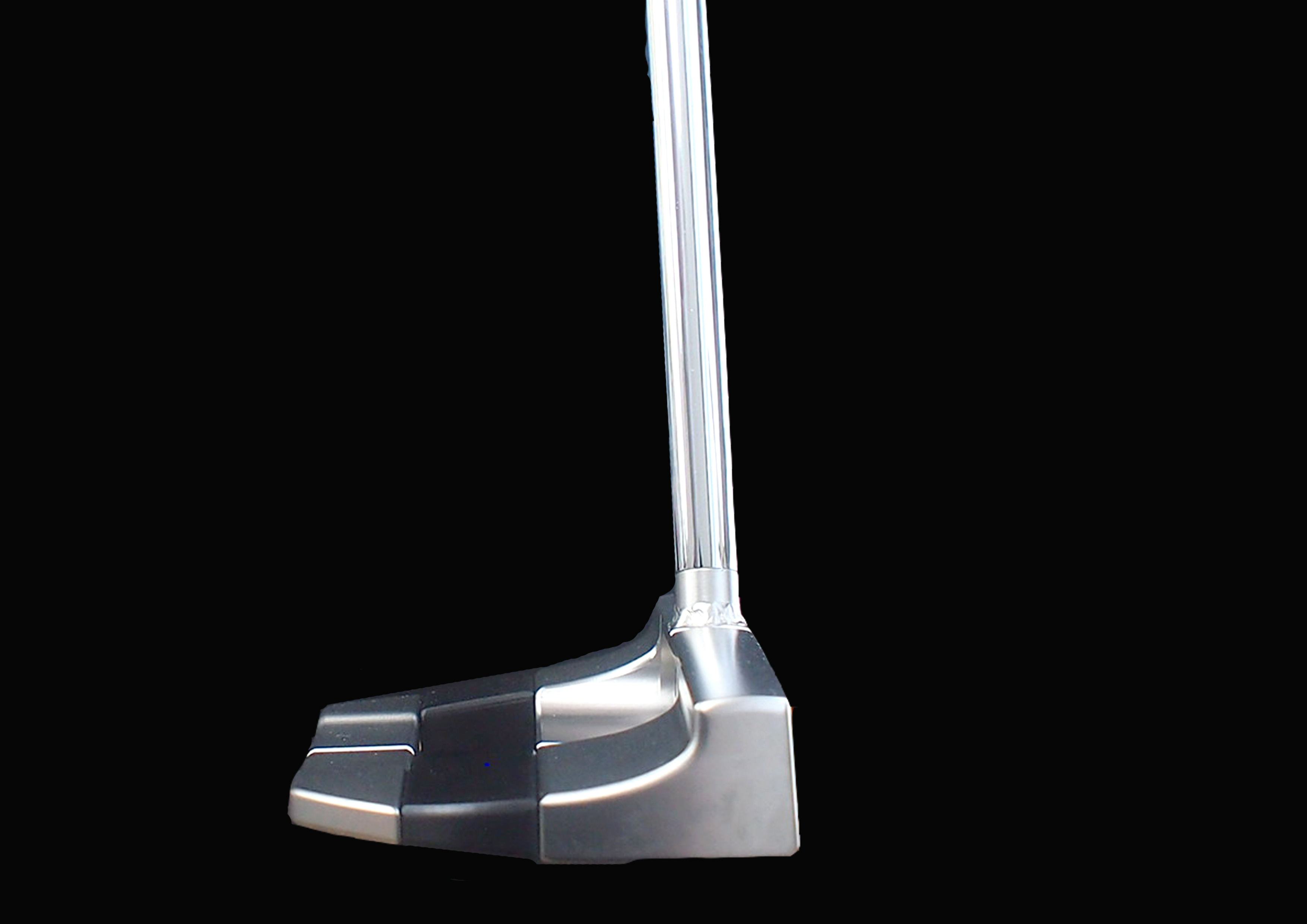 このモデルは通常トップラインのみにサイトラインが装備されています。直線的な目印が欲しいとの声が多くあり、トップブレードからフランジ後方部分まで一直線上にサイトラインを追加彫刻しています。これにより正しいアライメントが実現できるパターになっています。センターシャフトの特徴!シャフト延長線上でヒットが出来さらにセットアップ時の安心感を!フル装備のカスタムパターに仕上がっています。