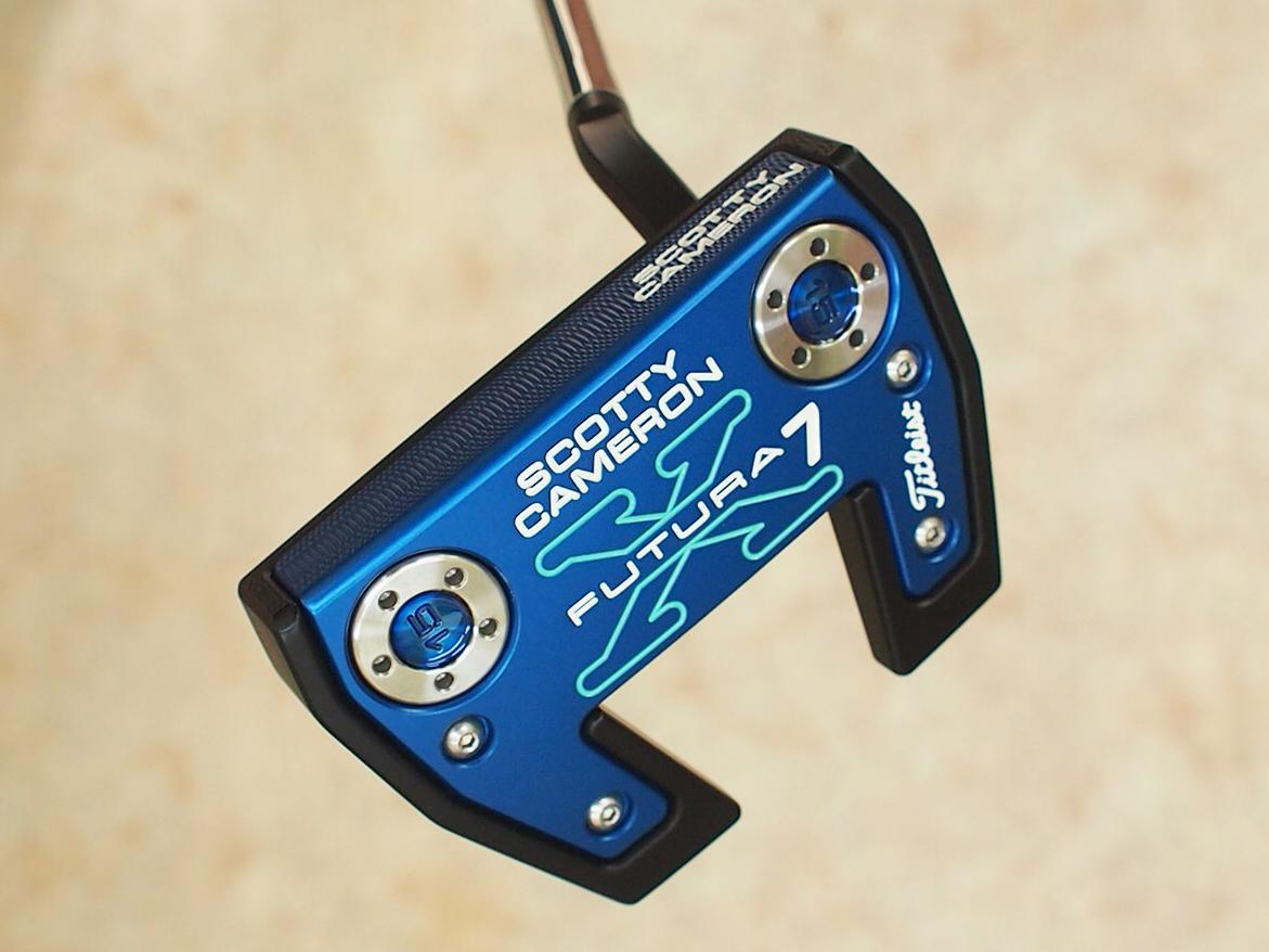 ベントシャフトのX7をショートネックにカスタムを施しています。このFUTURA X7にショートネックを取付けすることで、バランスの良い安心感を実現・・・ツアーパターでこの仕様が人気なのもわかります。ヘッドはTf-9仕上げに アルミ部分はブルーで仕上げています。ネックはシャフト2/3オフセットになっています。ペイント:ブルー