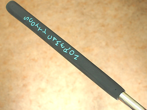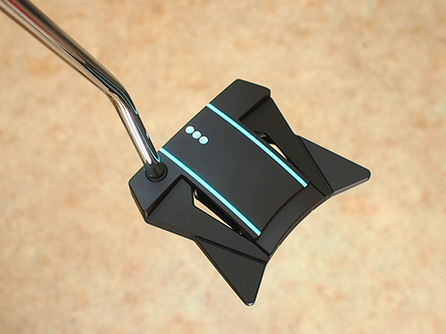 このパターをカスタマイズ!ヘッド全体をブラックアウトさせフランジ部2本のサイトラインをより引き立たせた仕様になっています。ストローク時のヘッド軌道を浮き上がらせ、正確なインパクトへと導きます。ペイントはブラックヘッドにティファニーブルーでカラーリング・・・ピストレログリップにもペイントしスペシャルなパターに仕上げています。