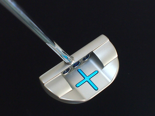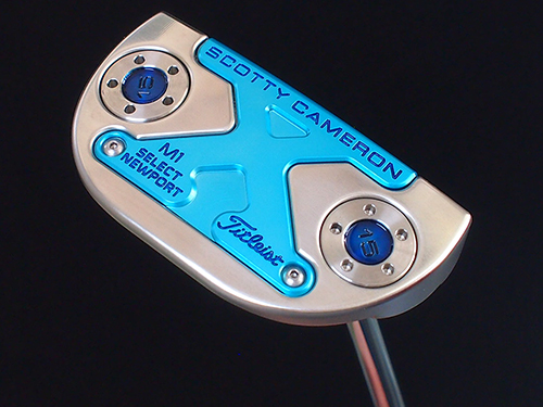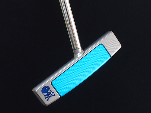 スコッティキャメロンのSELECTM1センターシャフトカスタム!シャフト延長線上でボールがヒット出来る事で人気のセンターシャフトです。クランクネック(オフセットモデル)とは違う操作性の良さがツアープロにも人気がある証拠ですね。最近は女子プロにも人気がありトーナメントでは使用プロが多くなっていますね。ポップアッププレートはハイパーメッキを施しブルーに・・・さらにフェース面トゥ側にはスカルを彫刻しカスタマイズしました。そしてグリップはキャメロンカスタムショップグリップブルーを装着。シャフトバンド(ブルー)も貼り付けブルーを基調にカラーリングしバランスの良い仕上げになっています。ブルーカラーのスカル彫刻は力強いイメージがありパッティング時の相棒にどうでしょうか!ストロークの安定感に!このパターはHEAVIER Balance仕様にもカスタマイズされストロークの安定感もアップされています。