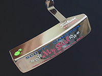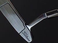 S 様 お気に入りパターをさらに自分好みに・・・・ 先ずフェース面にある文字&ドットをスムージング ミルド加工を施しバーチカル刻印とドットの再加工 ネック部のタイトリスト文字もスムージング、、、、 あとバックフェースのドットを一回り大きくし ビーズショットで仕上げています 元々が綺麗なヘッドでしたので新品同様の仕上げ になっています |