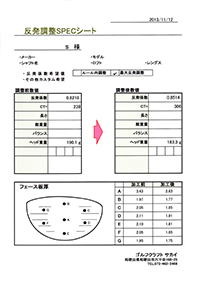 Y 様 反発係数を0.8444までアップさせています 加工前の反発係数が 0.8222 調整後0.022アップ 約15ヤード前後の飛距離アップが見込める数値が出ています これだけの数値が出るとかなりの飛距離アップが期待されますね |