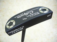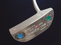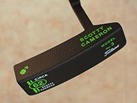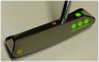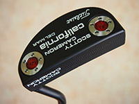 | N 様 スコッティ・キャメロンのNEWモデルカリフォルニアシリーズ デルマーのイメージチェンジです このパターはハニーディップと名づけられた琥珀色の仕上げが特徴ですが 当店のTf-9にてブラックに仕上げました 刻印カラー入れは白1色でシンプルに ブラックにすることでイメージがガラッと変わりますね 引き締まった感じで集中力もアップ間違いなしだと思います |