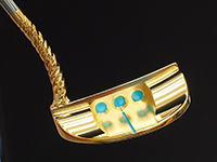 | U 様 モリタゴルフのリアクションパター フェース面の太目なスリットが美振動を起こさせソフトで粘りのあるタッチが得られるそうです またこのスリットが心地よい打音を聞かせてくれます ただバランスが少し軽いのでタングステンを挿入しバランスアップを図りました フランジには3本のみサイトラインが彫刻されていたのですがご依頼人さん曰くこの位置で パッティングをしても心地よい音がしないらしいです でスリットの中央が最も良い音なので このスリットの中央に合わせて目印が欲しいとの依頼でした それでトゥよりに同じサイトライン3本を彫刻し 計6本に これでセットアップが非常にし易く 心地よい音に(笑) バンパー部分にはニックネームの彫刻を施しTf-9で仕上げています このネームは依頼人さんの直筆をスキャニングし彫刻しています |