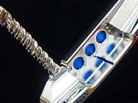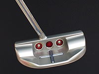 | O 様 おなじみデルマー3ネック切断溶接カスタムです 今回のご紹介は海賊をイメージしたスカル彫刻です ドクロは不死や強さを表すともいわれており また魔除けとしても人気があるそうです 片目に眼帯をしたスカルや 舵・イカリ・口にパイプをくわえたスカル等・・・・・ 考えると無限にイメージが浮かんできますね(笑)! あとトップブレードのヒール側に赤いドットを施して欲しいとの希望で約6mmのドットを 彫刻しています こちらはアドレス時にネックの立ち上がり部分にドットの見え隠れができ ネックでドットを見えなくするようにすると正しくセットアップできると言う使い方をするための 参考マークです キャメロンパター(ニューポート2.6)にも最初から付いているモデルがありますね |