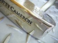 Y 様 限定販売されているキャメロンパターですね ドット部分にはペイントがされていない仕上げ・・・ 加工後はノーマルと同じ仕上げにとのご依頼で ペイント施さずシャフトの位置をセンターに 溶接し仕上げています レングスも33インチですが希望がありましたら 34インチにも仕上げる事は可能です |