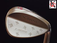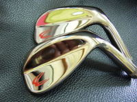 | Y 様 加工前の画像があればよかったのですが・・・・・ どちらもロフト調整 バックフェースの刻印を一部 溶接研磨しています クリーブランドはバックフェース中央の CG12 刻印と ZIP GROOVERS の刻印をスムージングし 51°の彫刻を施し仕上げています VOKEYは バックフェースの刻印 VOKEY TVD58 SPIN MILLEDマーク をスムージング ロフト調整後の57°を彫刻しています メッキはプラチナムメッキを施しスッキリとシンプルに仕上げました |